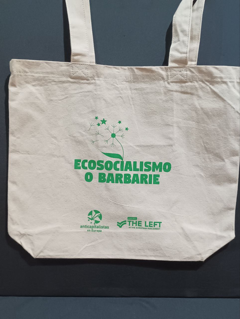 Bolso de tela con estampado en verde «Ecosocialismo o Barbarie»